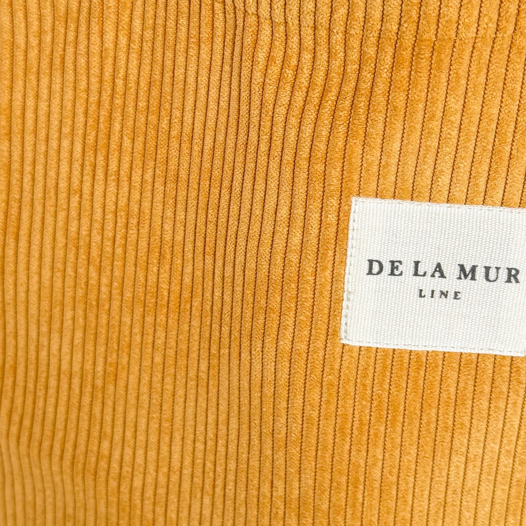 Made from thick mustard-colored corduroy fabric. For proper care, we recommend hand washing in cold water and avoiding the dryer.