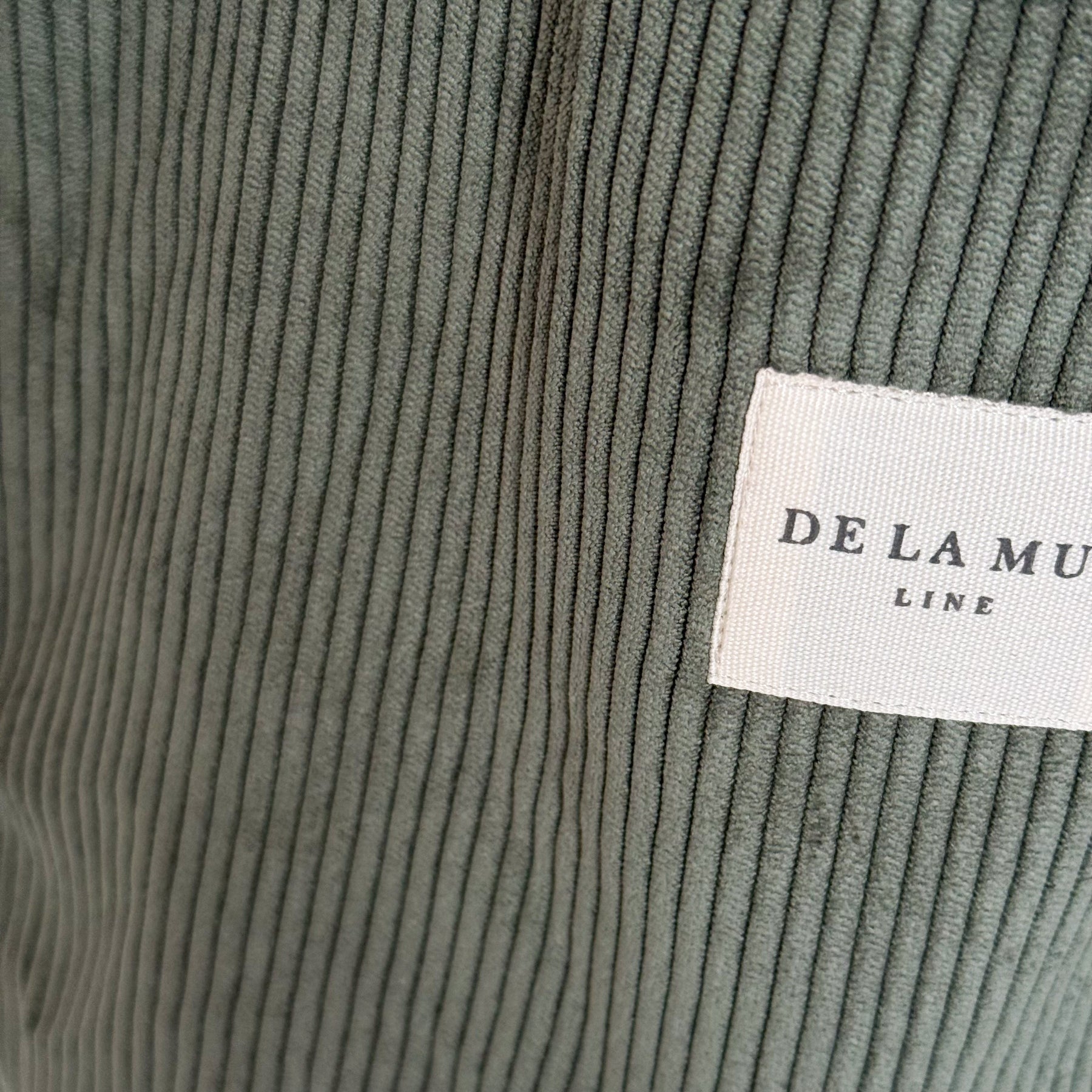 Bolsa ovalada con asas para llevar al hombro. Con un tejido grueso de pana de color verde. Para su correcto mantenimiento se aconseja lavarlo en frío a mano y no utilizar secadora.