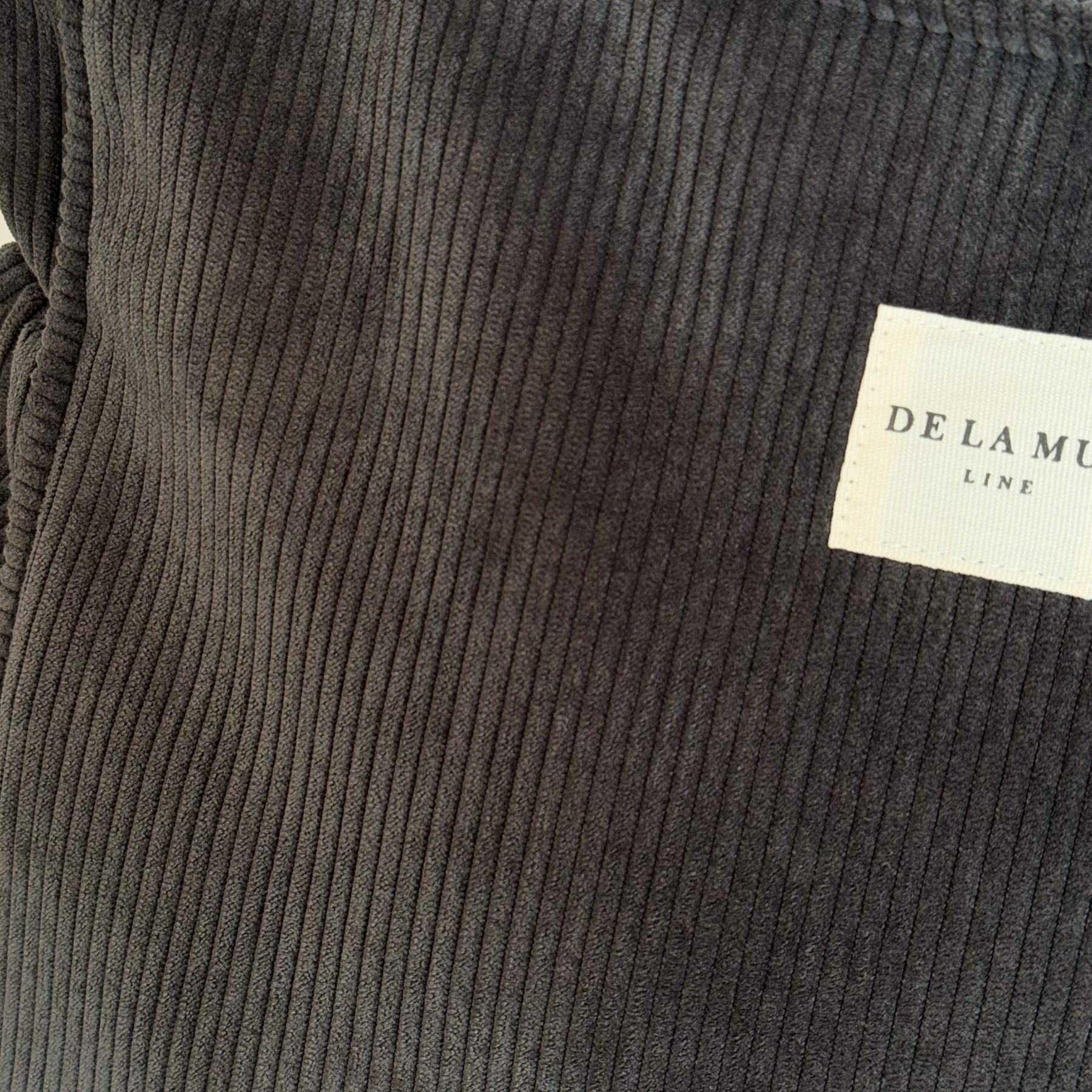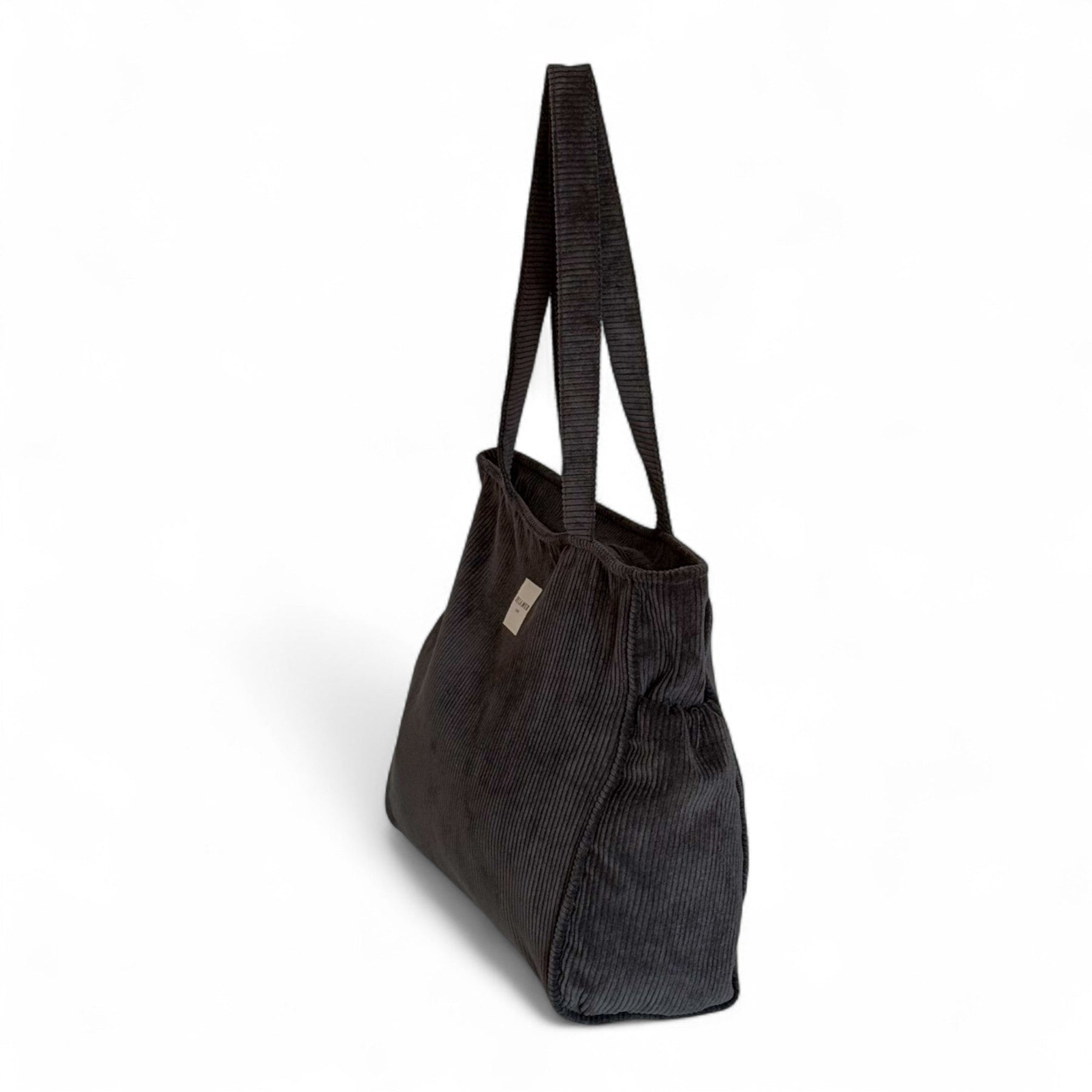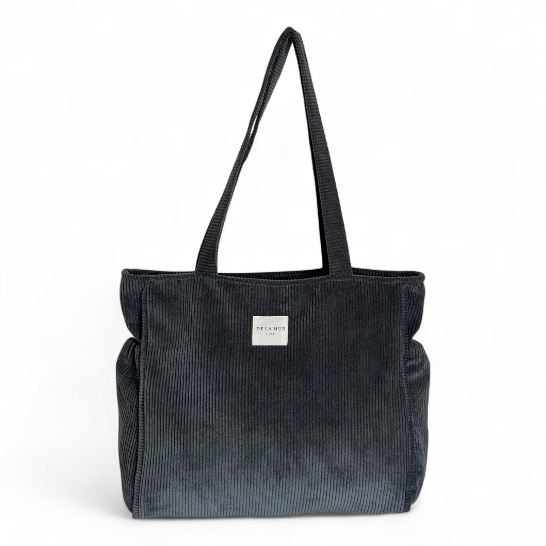 Sac de taille moyenne avec fermeture éclair sur le dessus et bretelles. Poches latérales. Fabriqué en velours côtelé épais gris foncé. Pour un entretien optimal, nous recommandons un lavage à la main à l'eau froide et l'utilisation d'un sèche-linge.