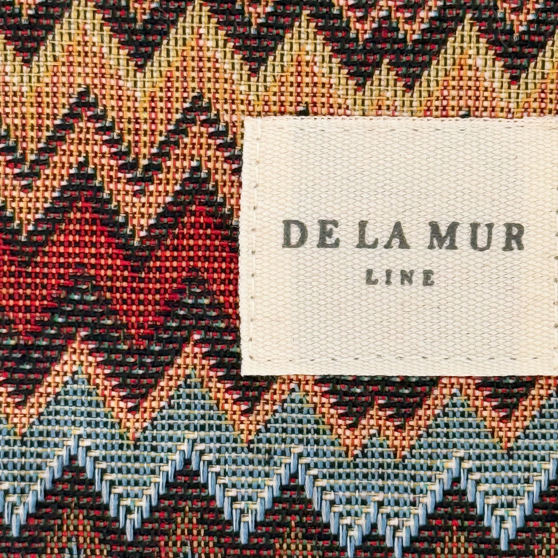 Étui à lunettes avec fermeture éclair sur le dessus et petite anse en cordon beige sur le côté. Confectionné en tissu jacquard épais à motif zigzag multicolore, ce modèle peut présenter des variations de motif selon la coupe. Doublé d'un épais tissu gris à l'intérieur. Pour un entretien optimal, nous recommandons un lavage à la main à l'eau froide et l'utilisation d'un sèche-linge.