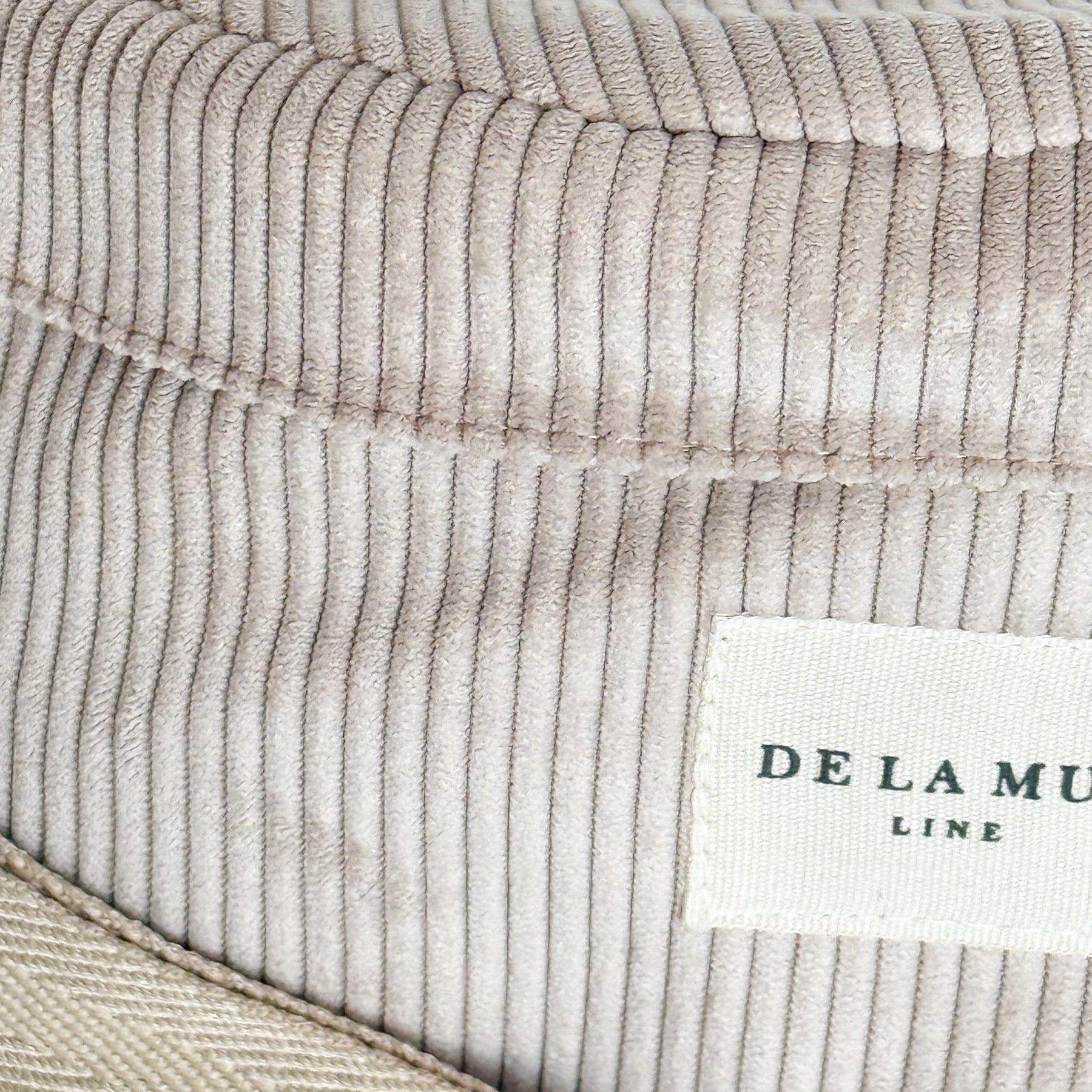 Sac banane à bandoulière avec longue bandoulière réglable en toile de coton beige à chevrons. Velours côtelé beige épais. Fermeture zippée sur le dessus. Poche intérieure. Doublure en tissu gris épais. Pour un entretien optimal, laver à la main à froid et ne pas sécher en machine.