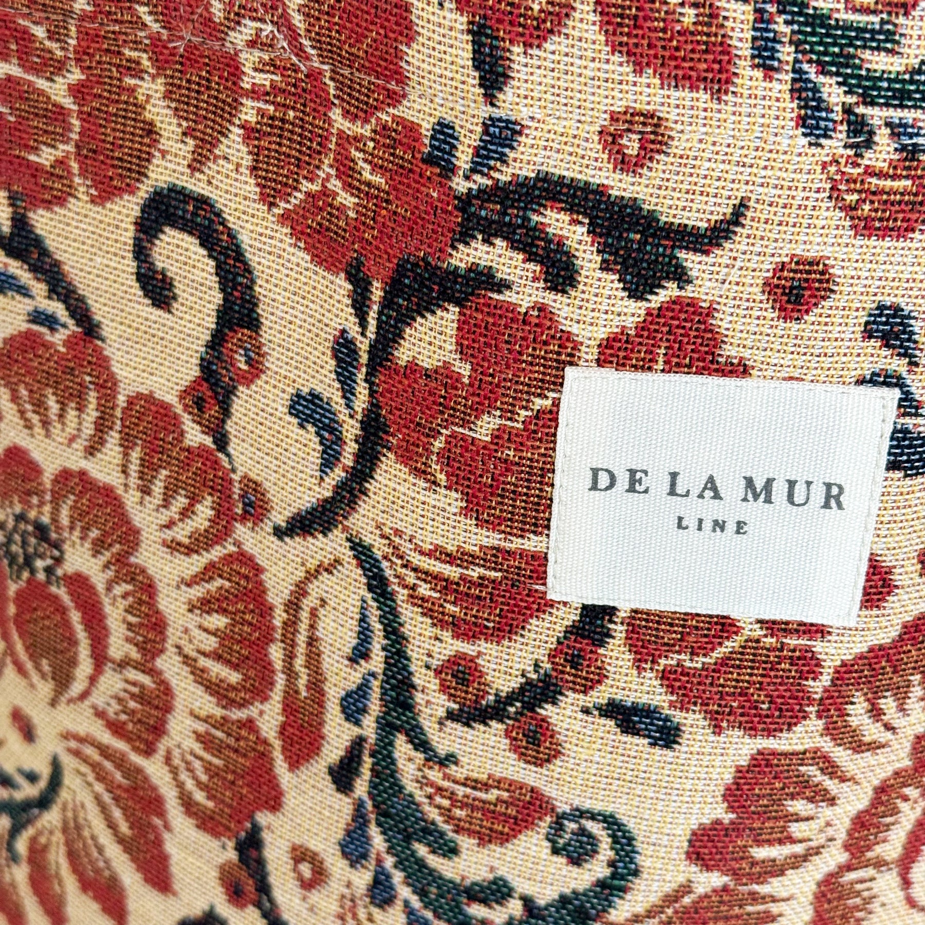 Made from thick jacquard fabric with floral print in beige and maroon tones.